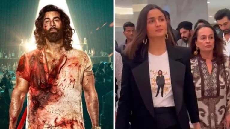 At Animal screening on Wednesday evening, Alia Bhatt wore a personalized T-shirt with a photograph of Ranbir Kapoor’s Animal look. Alia was joined by sister Shaheen Bhatt, mother-actor Soni Razdan in addition to Ranbir’s mom, actor Neetu Kapoor on the screening.