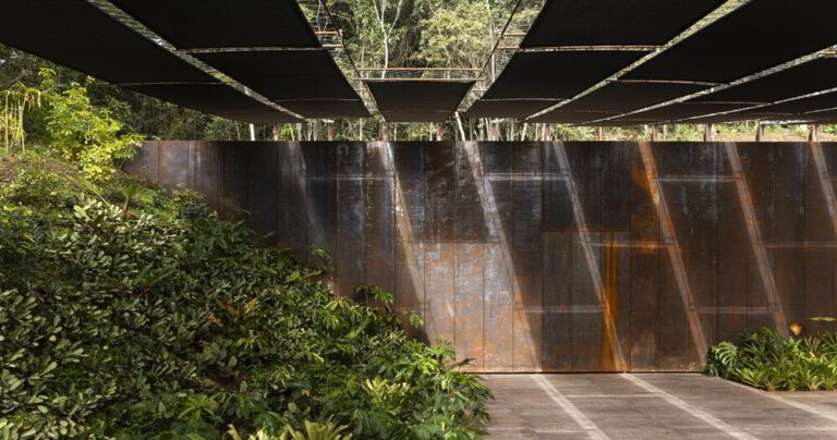 A key factor within the design of the Yayoi Kusama Gallery at Instituto Inhotim is the mixing of a versatile steel mesh that serves as a help floor for the expansion of Congea tomentosa, an unique climbing plant launched to Brazil within the Sixties by Roberto Burle Marx. This fastidiously chosen plant not solely provides shading and rainwater retention but in addition provides an aesthetic dimension to the design, with its ever-changing flower coloration in white, pink, lilac, and gray. The Congea contributes to the sense of time and steady transformation, enhancing the general expertise of the gallery.