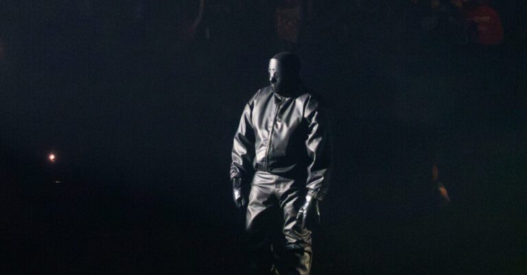 Ty Dolla Signal and Ye appeared a bit earlier than 11 p.m. on a smoke-filled stage — not less than, that was the impression, although it was arduous to verify who was there. Sporting a full masks, the rapper, designer and longtime provocateur by no means confirmed his face as he exulted in his new music, which included samples from Donna Summer time’s “I Really feel Love” and the Backstreet Boys (“Yeezy’s again, all proper!”).