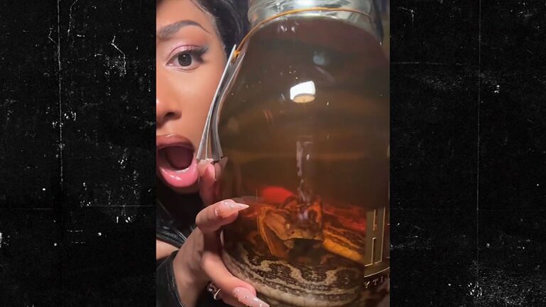 Megan Thee Stallion‘s snake-driven marketing campaign slithered away with a whimper when she met face-to-face with the actual deal … a bottle of alcohol with a useless snake stuffed inside!!!