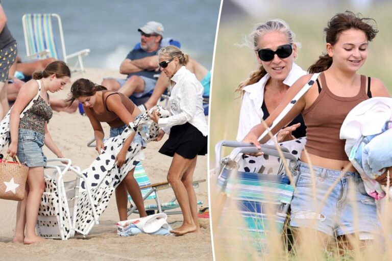 Sarah Jessica Parker hit a seaside within the Hamptons along with her 13-year-old twin daughters, Tabitha and Marion, over Labor Day weekend.